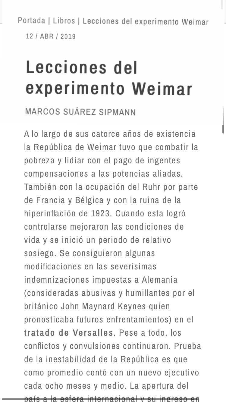 La república de Weimar nació en el 1918 presidida por Friedrich Ebert y que sufrió una fuerte hiperinflación entre el 1921 y el 1923
